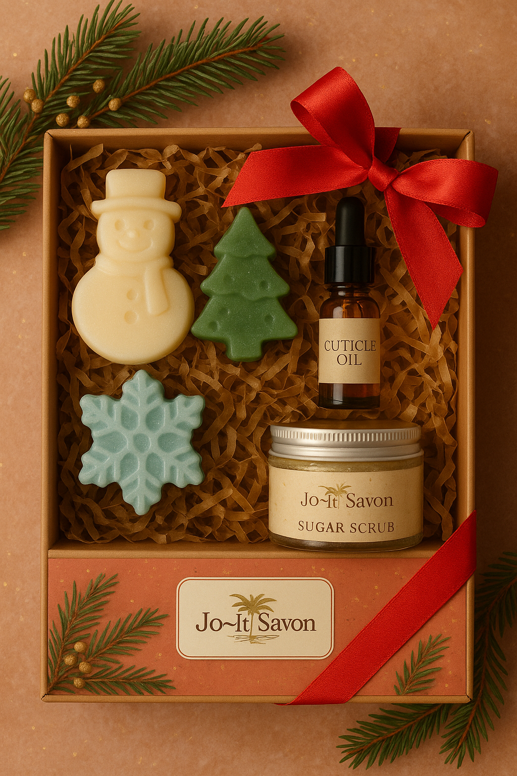 ¡Celebre la navidad con estilo con nuestra Cajita Christmas Eve! Está llena de lujo y sofisticación con nuestros jabones de glicerina exfoliantes y aceite de cutícula, perfectos para cuidar e hidratar su piel durante las celebraciones. Disfrute de una experiencia exclusiva y regale belleza a sus seres queridos.